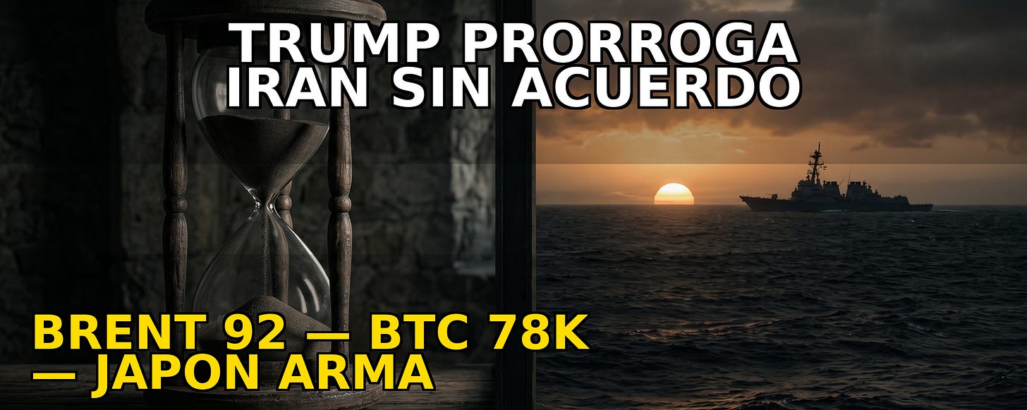 DAILY REPORT 22/04/2026 | TRUMP PRORROGA LA TREGUA CON IRÁN ALEGANDO “DIVISIÓN INTERNA” EN TEHERÁN — EL BRENT CEDE A 92 Y EL CRIPTO VUELA
